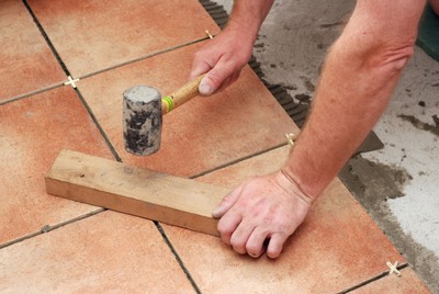 По мере укладки последующих плиток производится тщательный контроль за ровностью поверхности с помощью уровня. В случае необходимости плитка выравнивается с помощью специальных клинышков или же лёгким простукиванием резиновым молотком через деревянную ровную накладку.